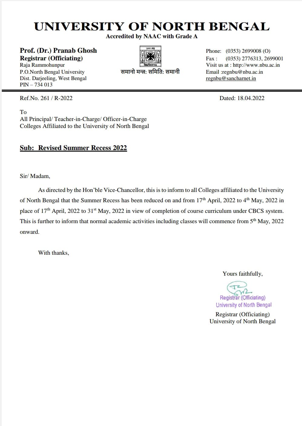 | Commencement of Academic Session of 1st Semester | September, 2022 |