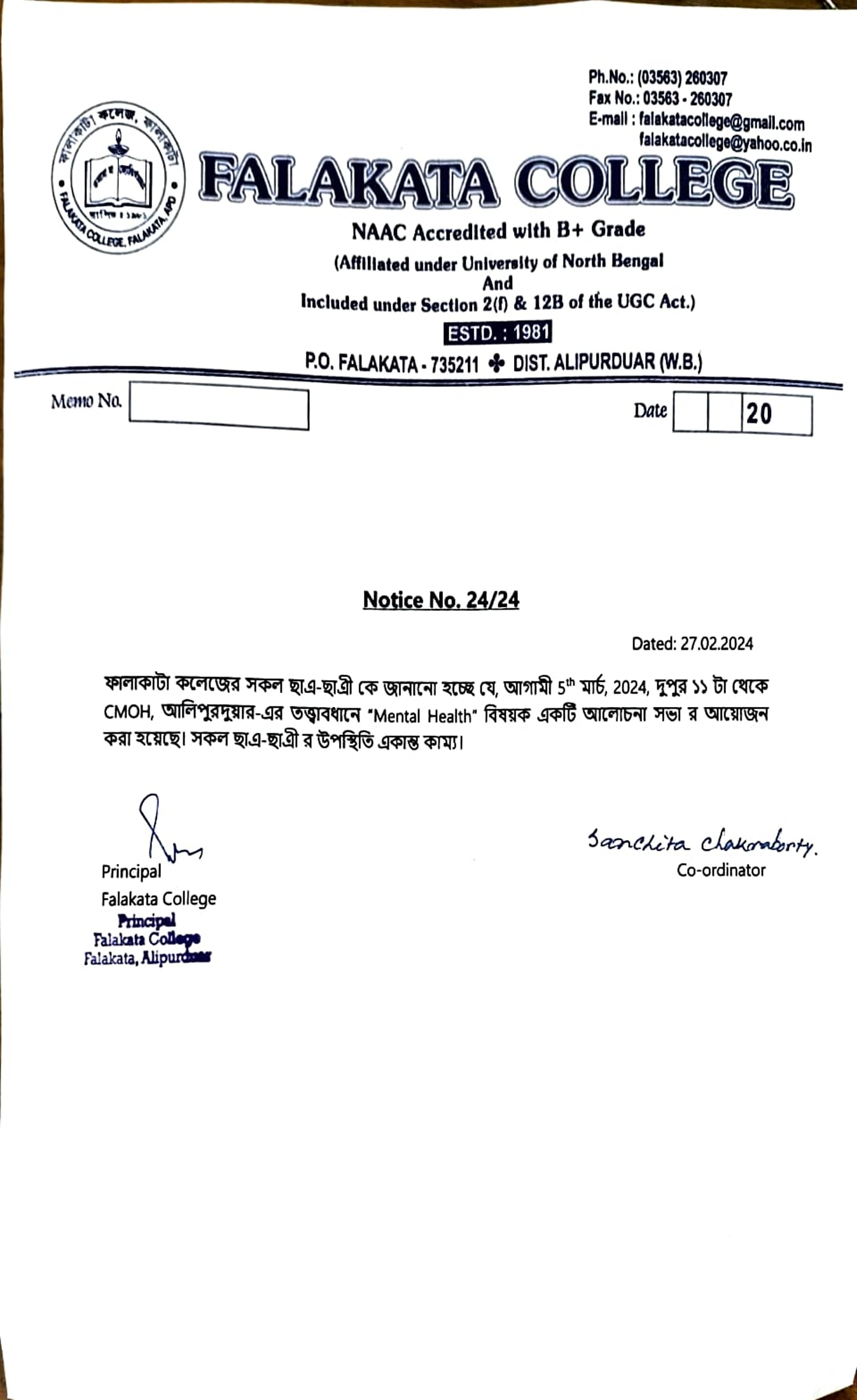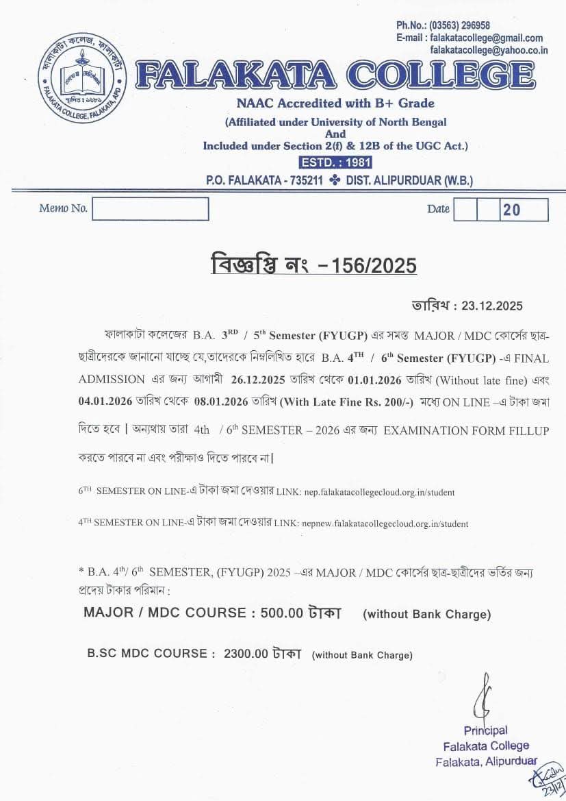 Falakata College has long been rendering an important role in imparting higher education to students from a region primarily inhabited by SC/ST communities and....Read more